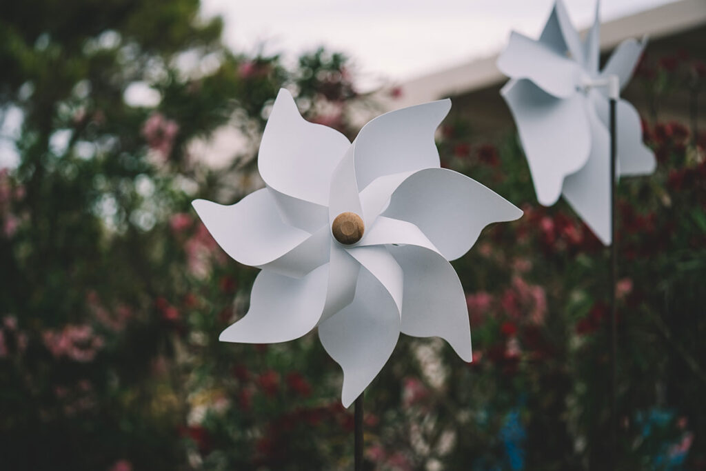 “White Wind” è un’installazione che si sviluppa lungo i 60 metri della duna artificiale che costeggia il viale che conduce al mare: tra erbacee perenni, arbusti e graminacee ornamentali, girandole bianche danzano al ritmo dalla brezza marina, inserendosi armonicamente nel gioco di colori e movimento.